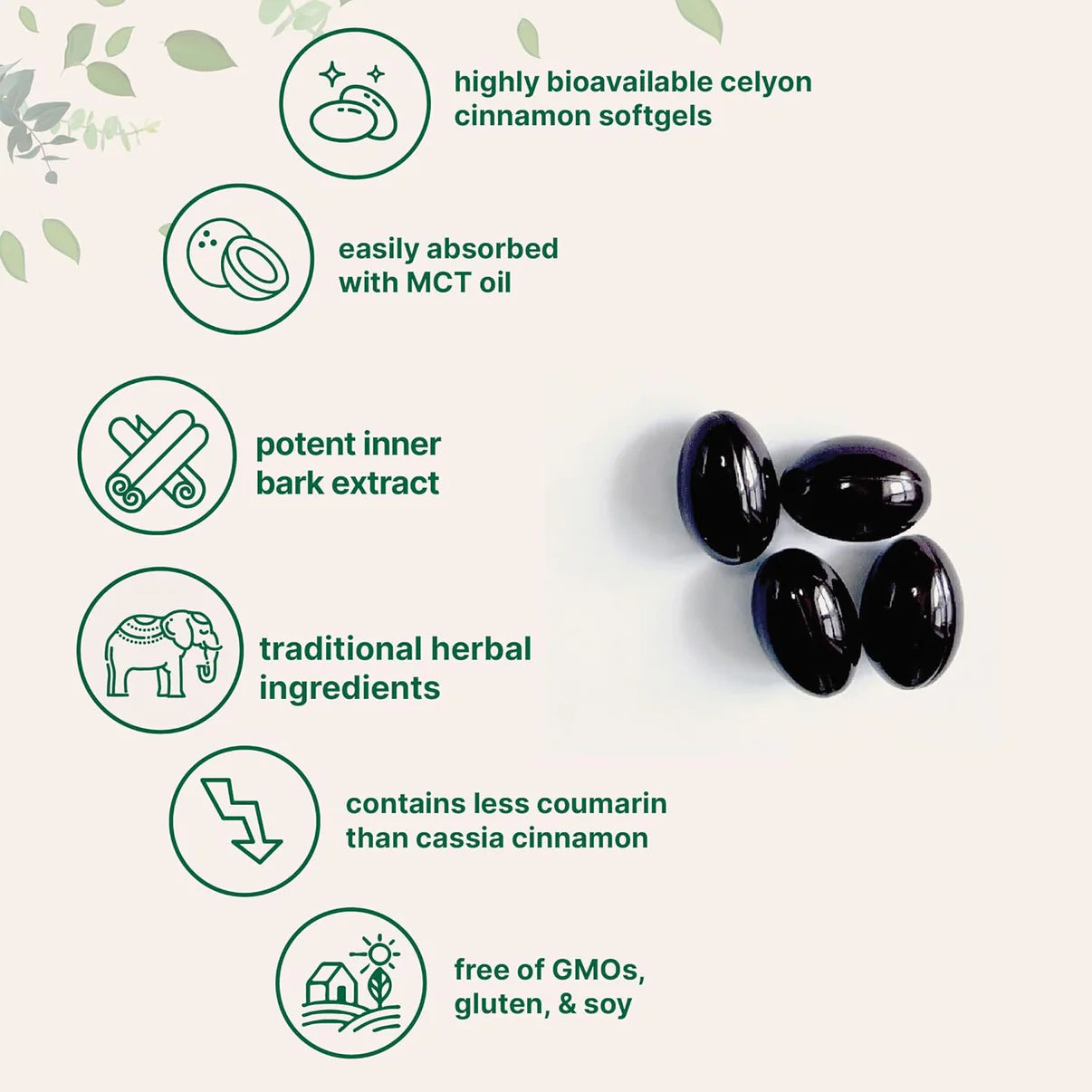 Most supplements use cheap Cassia cinnamon that contains liver-stressing coumarin. Ceylon cinnamon from Sri Lanka has virtually no coumarin, making it safe for daily therapeutic doses. Our 12-to-1 concentration delivers 7,200mg equivalent per serving in bioavailable softgels your body can actually absorb.